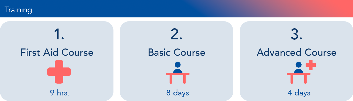 To work as a workplace paramedic, an additional 63-hour basic course is required. This course includes not only medical training but also legal principles and the correct documentation of workplace accidents.