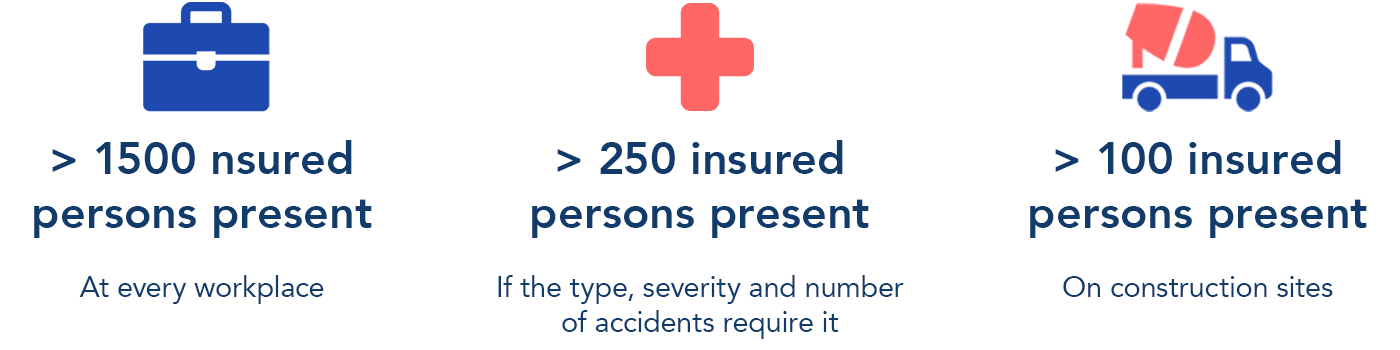 The decision to appoint an occupational first aider depends not only on the number of employees but also on the frequency of accidents. In establishments with more than 1,500 employees, their presence is not just recommended but mandatory in accordance with Section 27 of the DGUV.