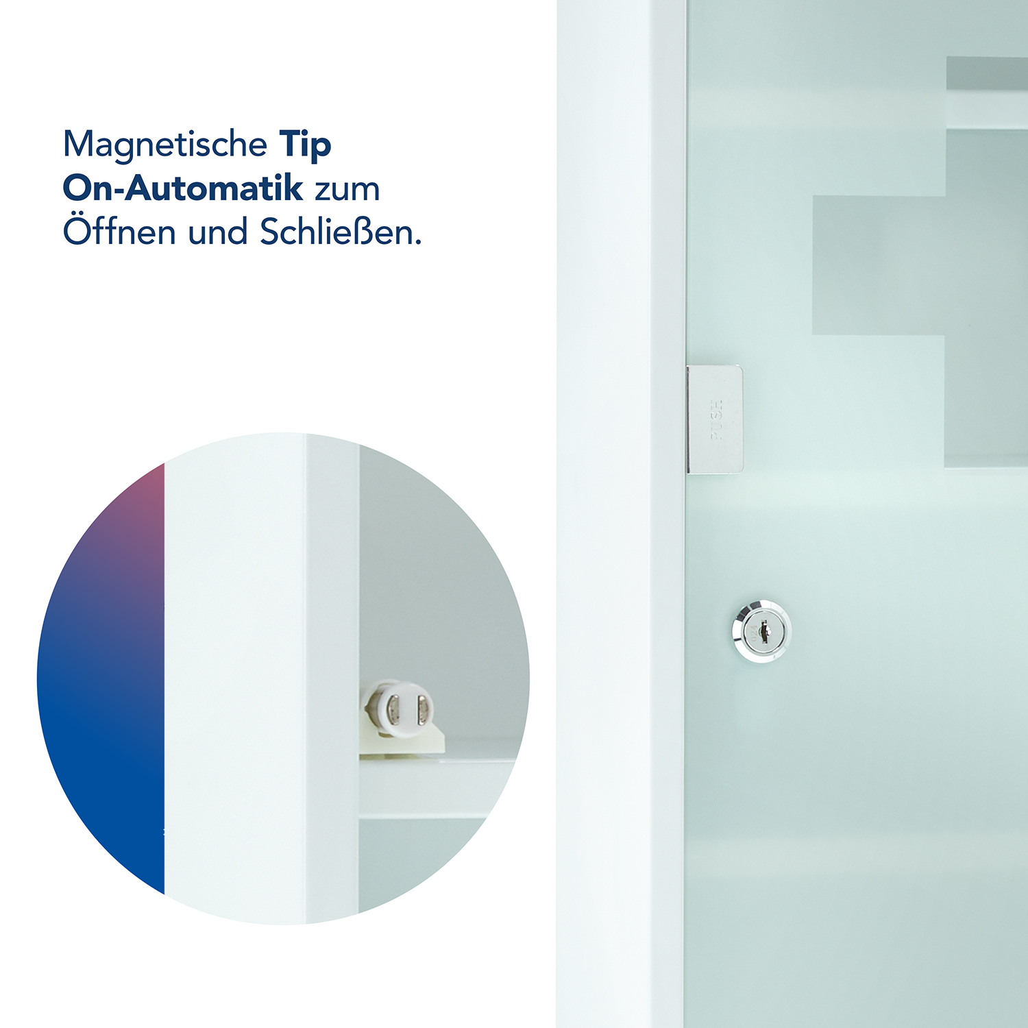 - Abschließbarer Medizinschrank aus Metall mit Glastür und magnetischem Tip-On-Mechanismus