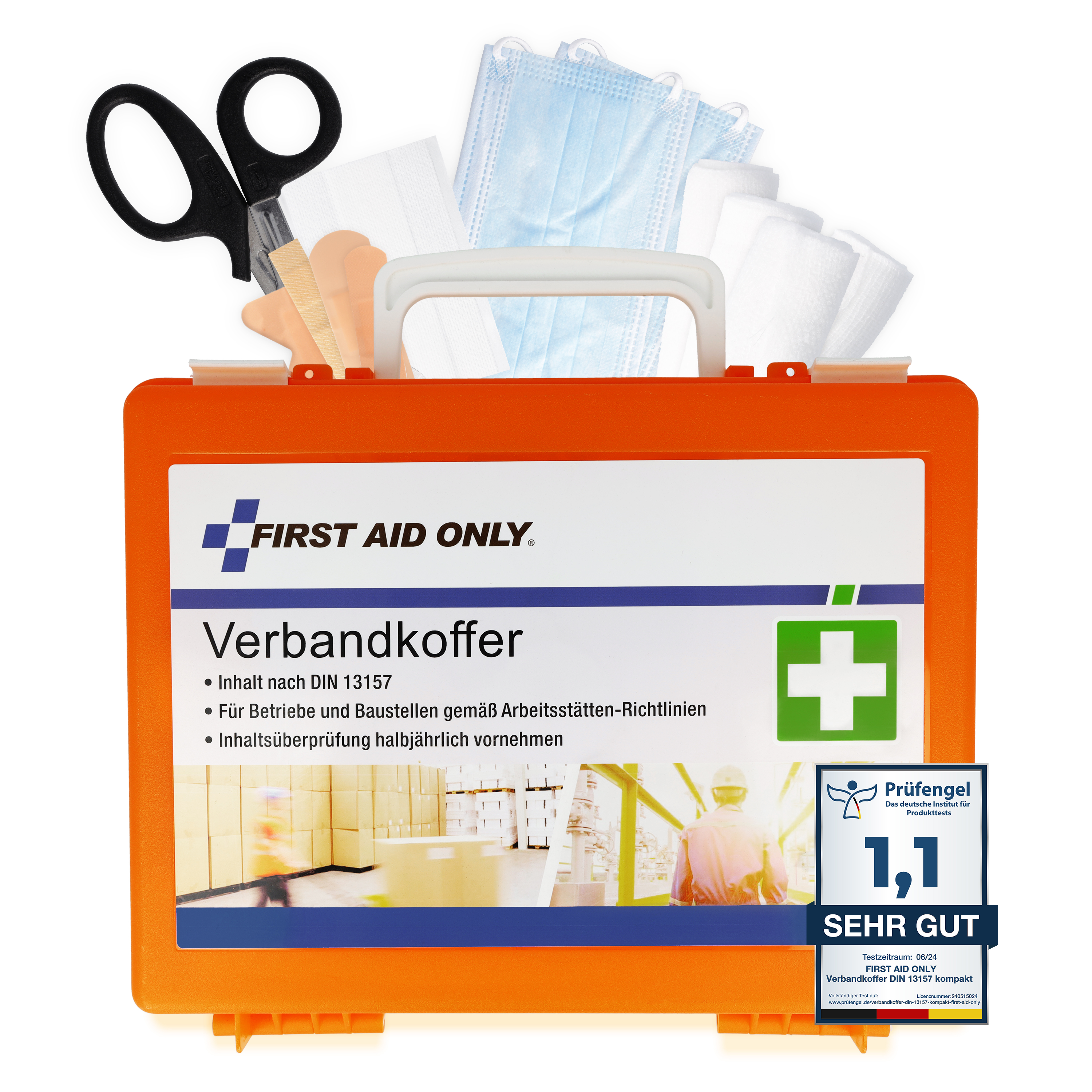 - Erste-Hilfe-Koffer nach DIN 13157 für Betriebe und Baustellen gemäß Arbeitsstättenrichtlinien